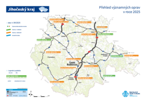 Aktualizovaná mapa plánovaných oprav v Jihočeském kraji.