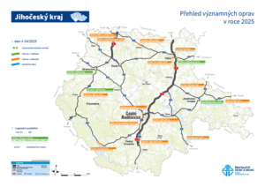Aktualizovaná mapa plánovaných oprav v Jihočeském kraji.