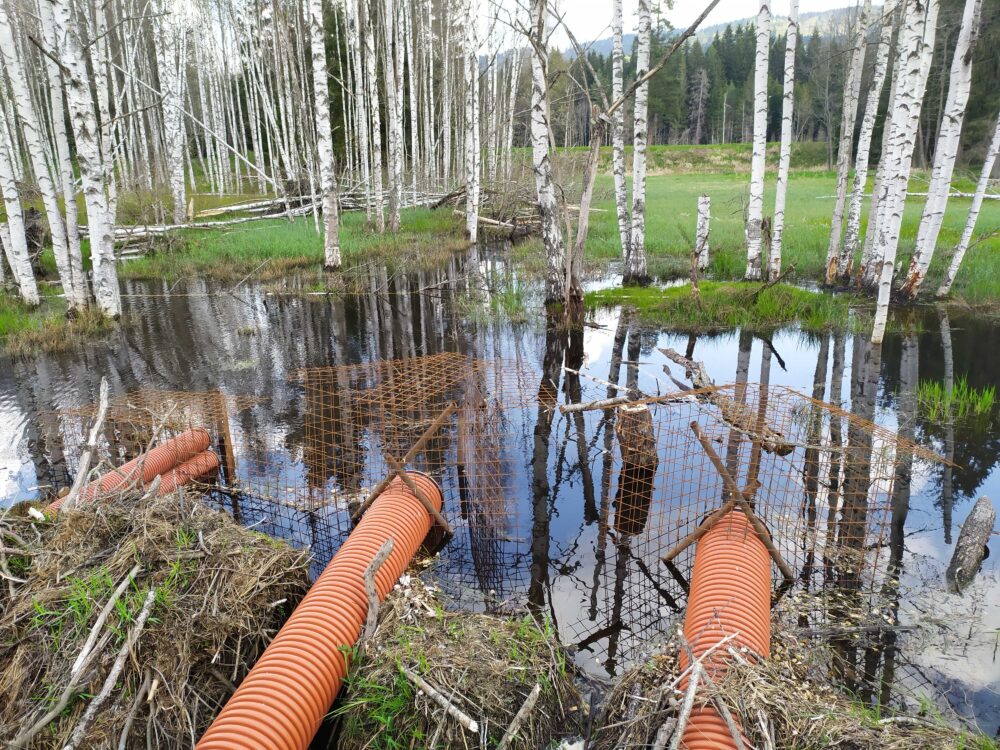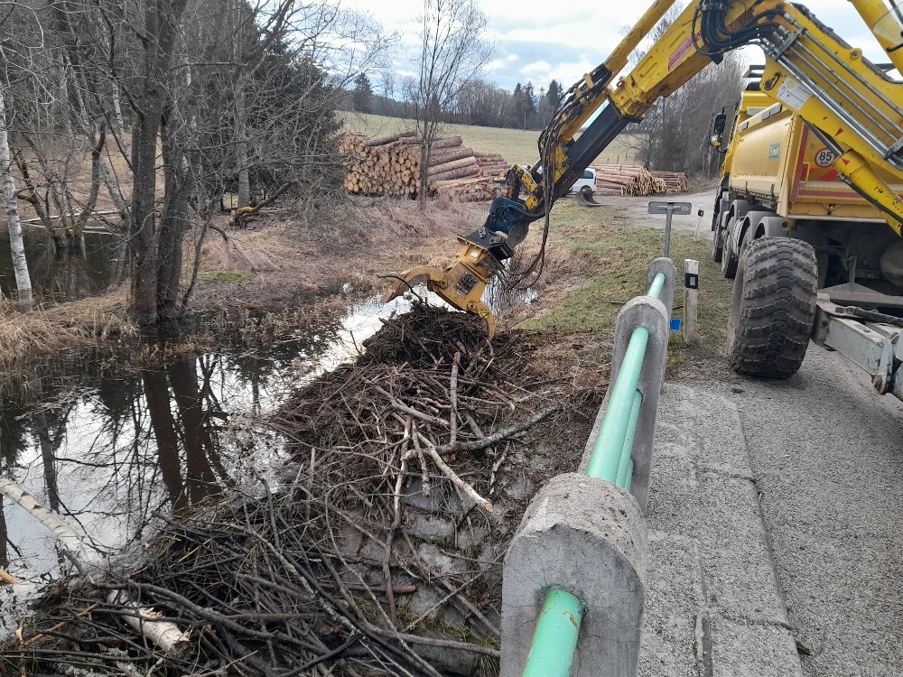 Po konzultaci s odborníky bylo rozhodnuto o prakticky jediném možném řešení, které zajistí bezpečnost provozu na silnici a eventuálně donutí bobra přesunout se dále po proudu potoka, kde jeho hráz nebude nikoho ohrožovat.