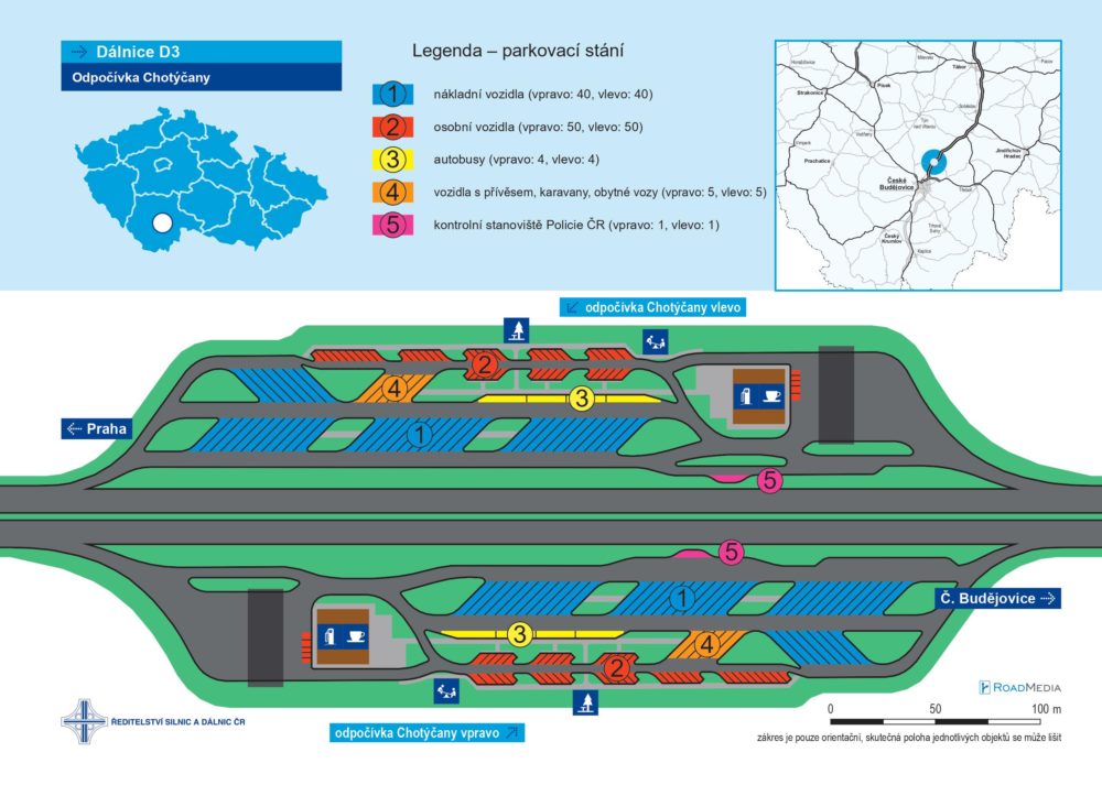 Celkový počet parkovacích míst na odpočívce bude po jejím zprovoznění následovný: