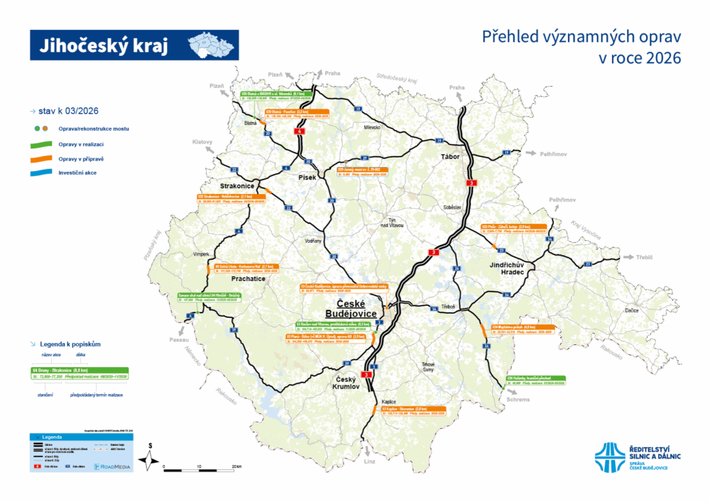 S příchodem přívětivějšího počasí se plánované akce začnou postupně opět rozjíždět. Největší porce oprav pak během letoška čeká silnici I/3, kde plánujeme celkem čtyři akce.