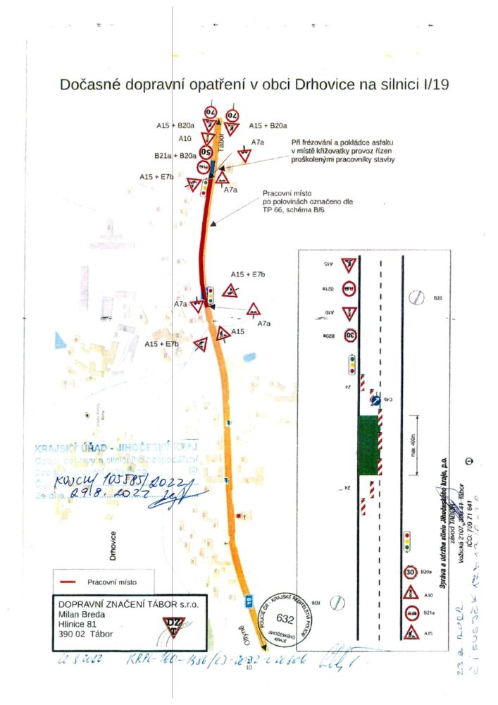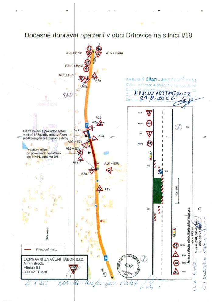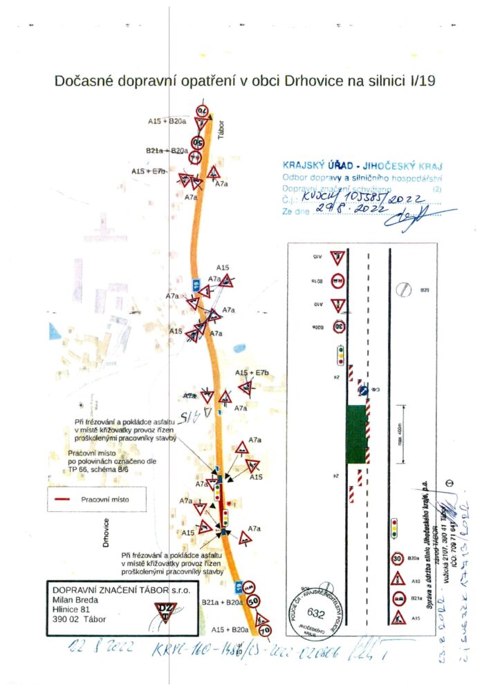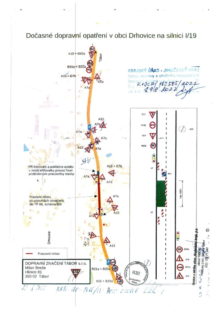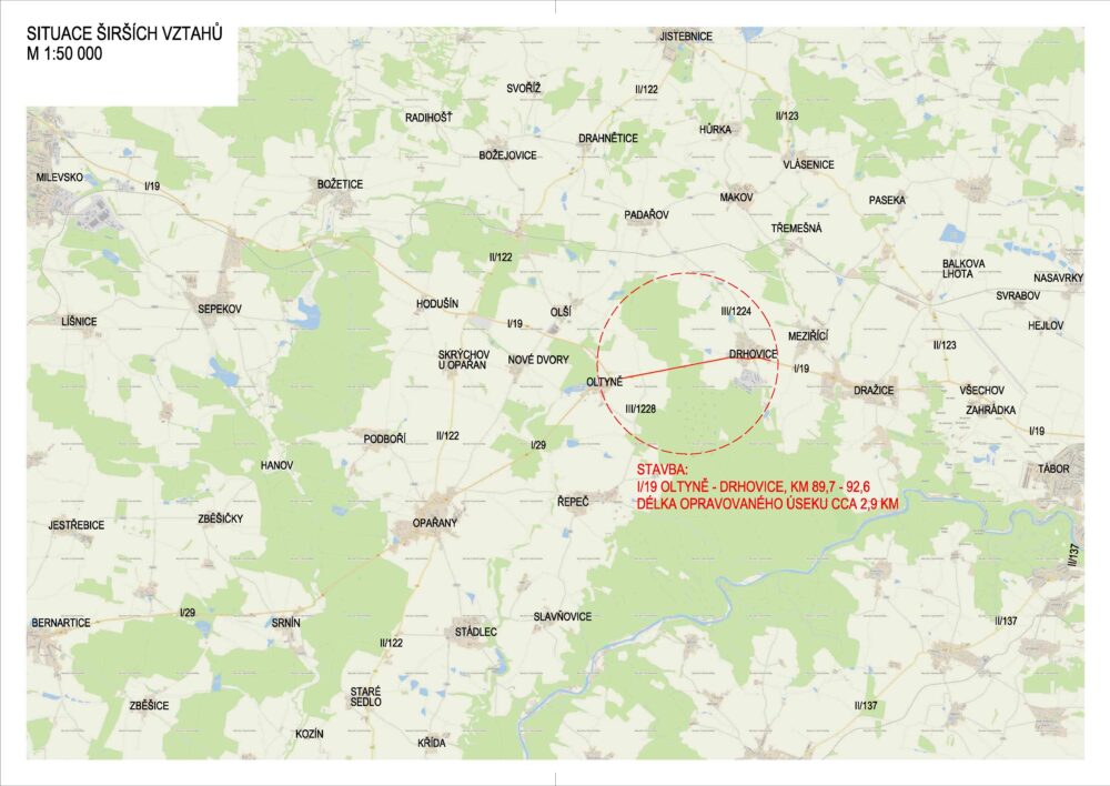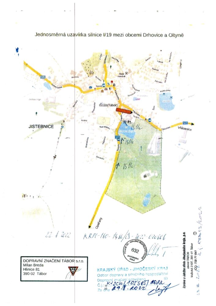 Ve čtvrtek 8. 9. 2022 bude zahájena oprava silnice I/19 v rámci akce I/19 Oltyně – Drhovice na Táborsku.
