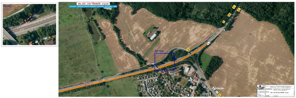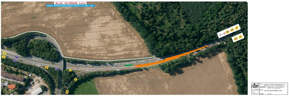 Během včerejšího dne došlo k předání staveniště zhotoviteli a také byla oficiálně zahájena oprava čtyřpruhu silnice I/24 a I/34 na výjezdu z Třeboně směrem na Jindřichův Hradec.