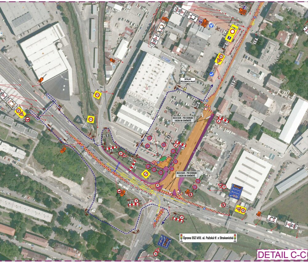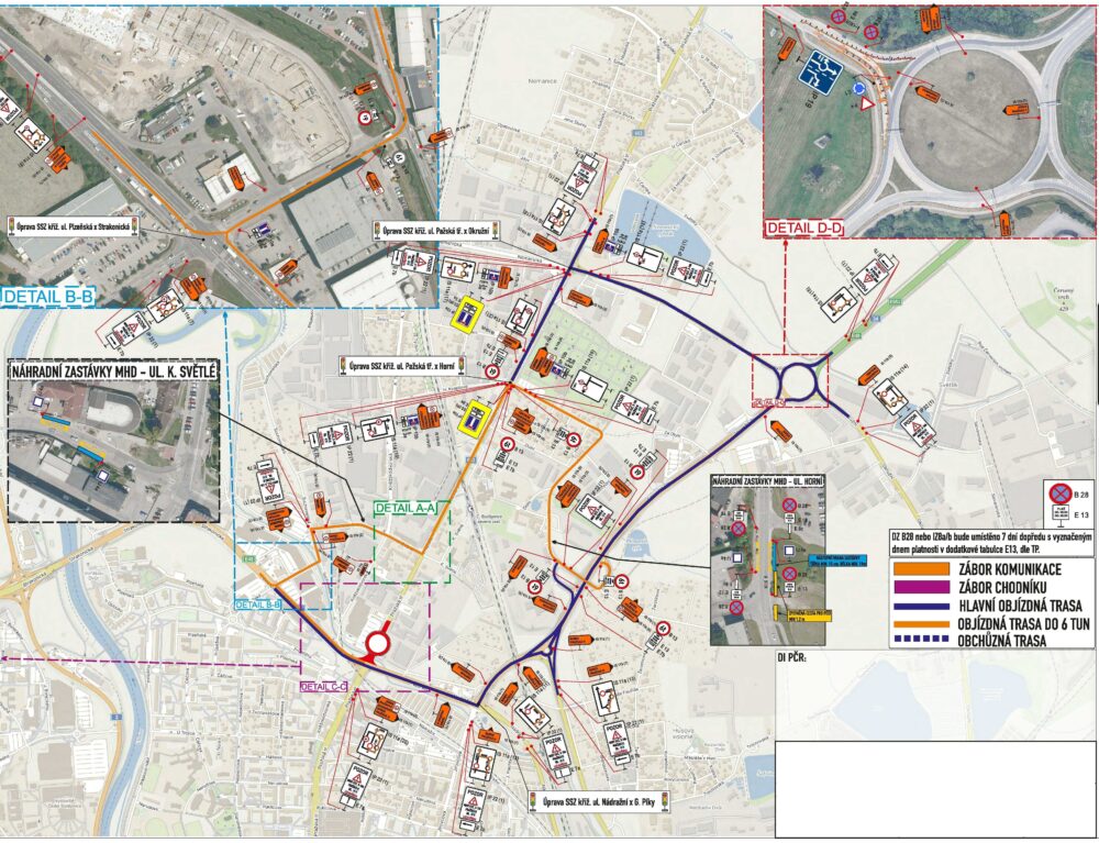 Vzhledem k rozsahu plánovaných úprav bude po dobu provádění prací nezbytné zcela uzavřít silnici I/3 (Pražskou třídu) v místě stavby. Řidiči tak budou muset využít značené objízdné trasy. Hlavní objízdná trasa bude vedena po ulicích Nádražní, Generála Píky a Okružní. Vozidla s hmotností do 6 t budou moci využít i objízdnou trasu po ulicích Suchomelská a Karolíny Světlé.