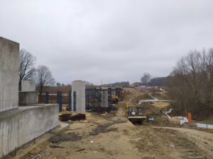 Na stavbě nyní probíhají převážně zemní práce na budoucí trase I/34 a také práce na výstavbě 111m dlouhého mostu, který se na zmíněné silnici nachází.