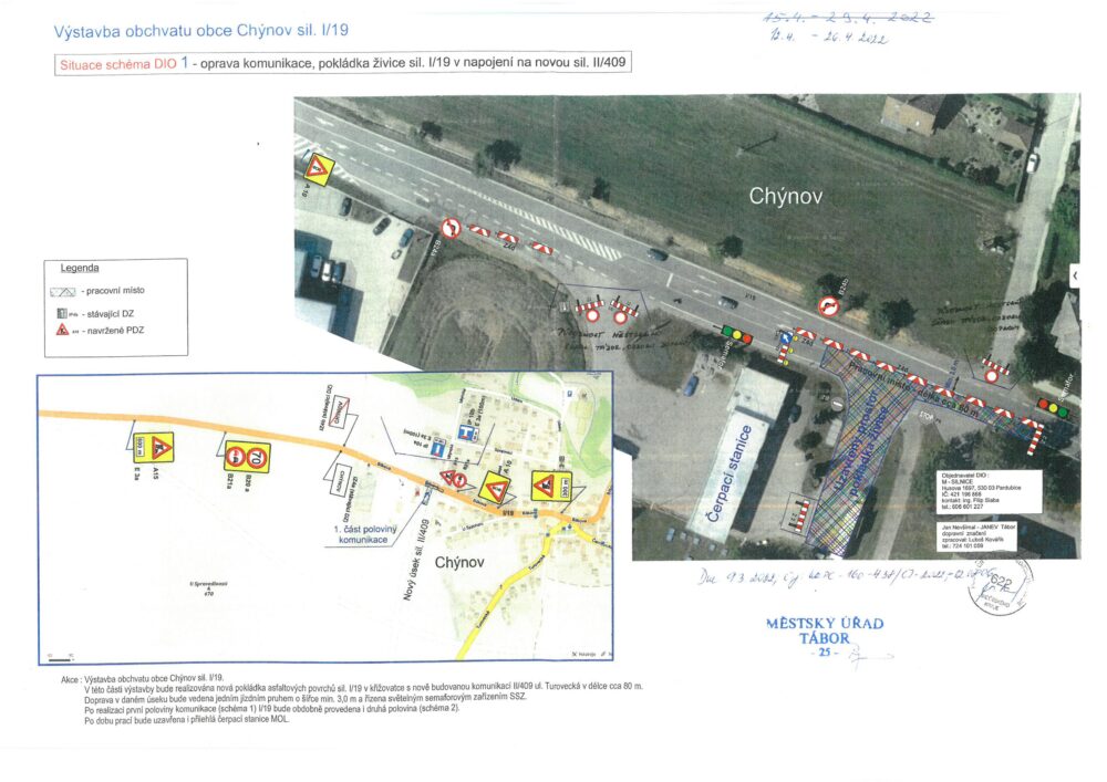 Od 12. 4. do 26. 4. bude následně omezen provoz také na stávající silnici I/19 v blízkosti čerpací stanice MOL. V této části komunikace bude realizována pokládka nových asfaltových povrchů silnice I/19 na křižovatce s nově budovanou částí komunikace II/409. I v tomto místě bude provoz veden jedním jízdním pruhem kyvadlově.