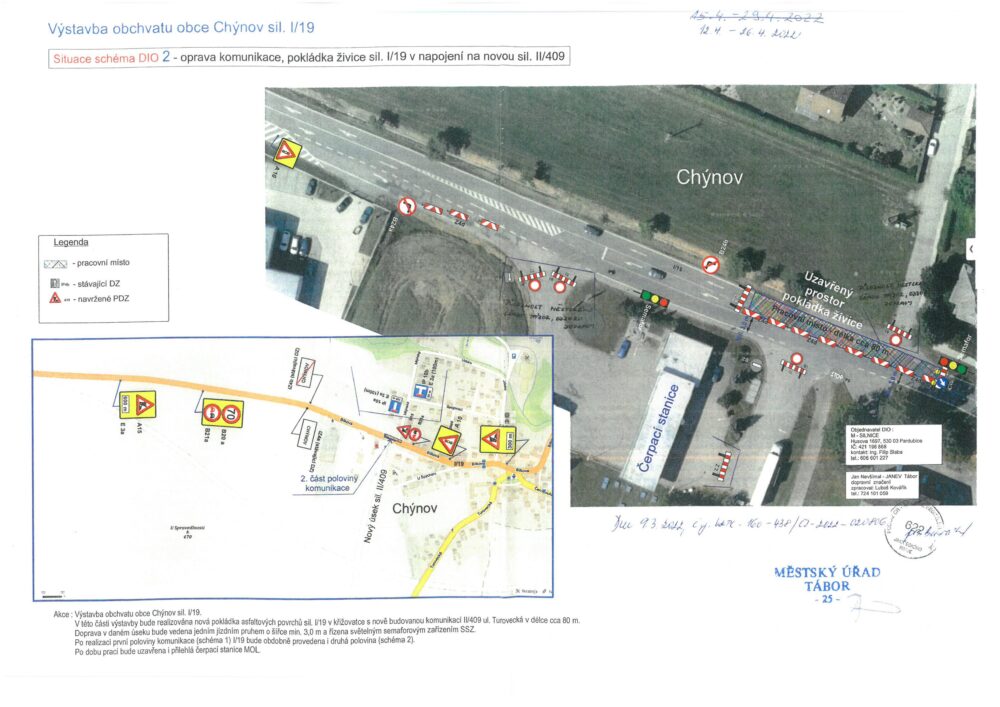 Od 12. 4. do 26. 4. bude následně omezen provoz také na stávající silnici I/19 v blízkosti čerpací stanice MOL. V této části komunikace bude realizována pokládka nových asfaltových povrchů silnice I/19 na křižovatce s nově budovanou částí komunikace II/409. I v tomto místě bude provoz veden jedním jízdním pruhem kyvadlově.