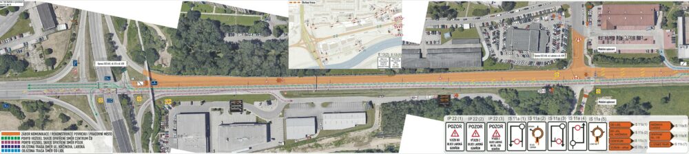 Uzavřen bude střední pás vozovky. Provoz v obou směrech bude veden pravými jízdními pruhy.