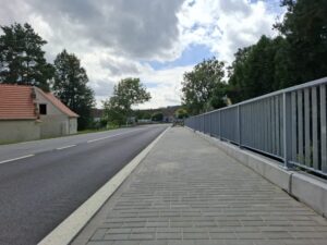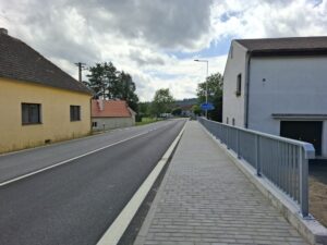 V minulém týdnu došlo k úplnému zprovoznění silnice I/22 v Lidmovicích na Strakonicku, kde od konce dubna probíhaly práce na výstavbě opěrné zdi a nového chodníku.