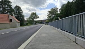 V minulém týdnu došlo k úplnému zprovoznění silnice I/22 v Lidmovicích na Strakonicku, kde od konce dubna probíhaly práce na výstavbě opěrné zdi a nového chodníku.