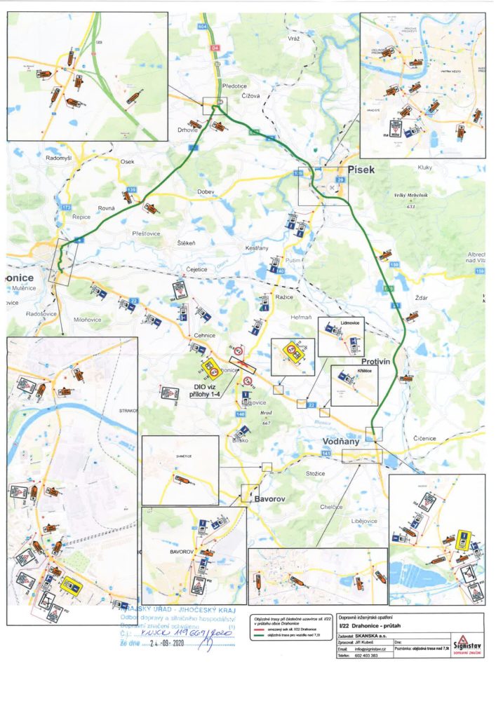 V minulém roce již v rámci první etapy proběhla obnova asfaltového souvrství vozovky na průtahu obce. V rámci druhé etapy dojde ke stavebním úpravám komunikace I/22 v podobě vybudování středních dělících ostrůvků v místě vjezdu do Drahonic, a to jak ve směru od Strakonic, tak ve směru od Vodňan. Dále budou opraveny, respektive odstraněny stávajících opěrné zídky a dojde k realizaci zídek nových. Povrch silnice I/22 pak bude opraven i v rozsahu opěrných zdí.