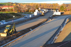 Stavba MÚK Drysice, jejímž cílem je zvýšení bezpečnosti dopravy na D46, pokračuje. Aktuálně betonujeme mostní římsy a dokončujeme gabionovou zeď pod nadjezdem. Dokončeny už máme například odvodňovací žlaby, izolaci mostu a instalaci mostních závěrů. Hotovo bude na podzim 2022.