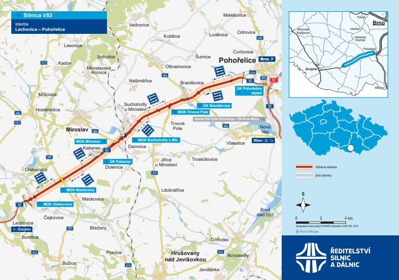 ŘSD aktuálně chystá soutěž na zhotovitele hlavních stavebních prací na stavbě I/53 Lechovice – Pohořelice, jejichž zahájení plánuje v roce 2026 a dokončení v roce 2029.