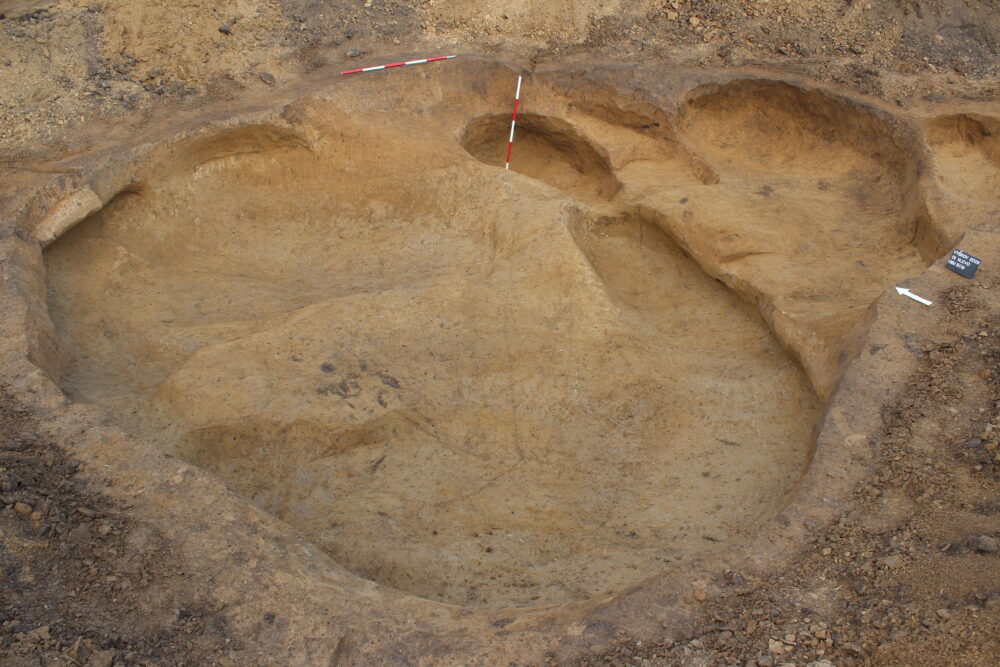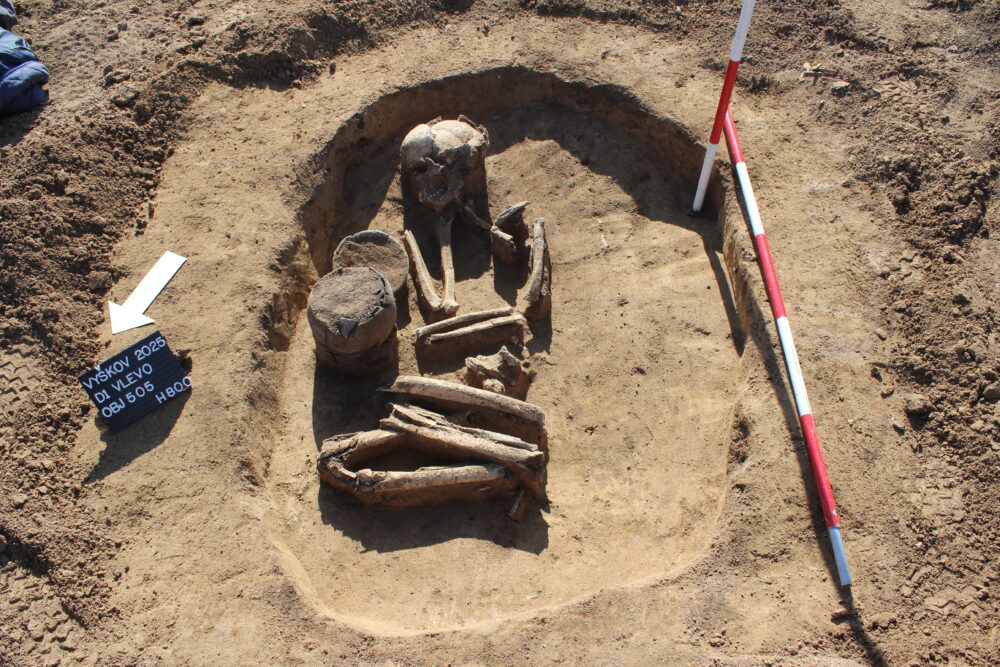 Na ploše stavby archeologové od ledna do března odkryli téměř 30 archeologických objektů. “Většinou šlo o sídlištní objekty, především jámy různého typu, zásobní jámy či rozsáhlé stavební jámy. Prozkoumali jsme i jeden kostrový hrob. Zemřelý byl uložen ve skrčené poloze na pravém boku. Jako milodary byly do hrobu uloženy dvě keramické nádoby. Hrob náležel únětické kultuře (cca 2000 – 1800 př. n. l.). Plocha stavby nebyla osídlena současně, ale v různých obdobích, a to jak v pravěku, tak i v časném středověku či novověku,“ sdělila Blanka Mikulková z Ústavu archeologické památkové péče.