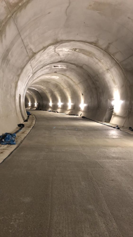 Betonáž dna tramvajového tunelu na stavbě I/42 Brno, VMO Žabovřeská je hotová! V nejbližší době v něm začneme budovat tramvajovou trať, jejíž dokončení máme v plánu do konce roku. V únikové štole v délce 50 m (viz foto níže) dokončujeme betonáž sekundárního ostění.