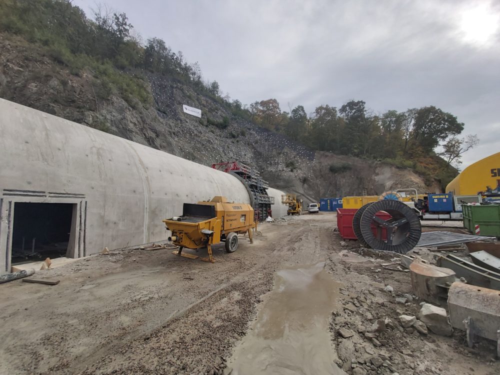 Stavba tramvajového tunelu na Žabovřeské svižně pokračuje jeho hydroizolací a budováním podkladních betonů. Už máme hotovou betonáž posledního profilu přesypané části, kterou už jsme napojili na protaženou část. Únikové štoly je proraženo téměř 50 m. Ústit bude do silniční galerie, na které stále pracujeme a zajišťujeme svahy kotvami. Budujeme také opěrné zdi. Začali jsme také budovat základy provizorního technologického objektu pro řízení tunelu a galerie.