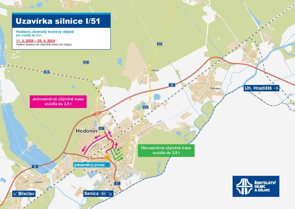 Ve druhé etapě od (cca od 6. 4. do 20. 4.) zprovozníme již opravené ¾ křižovatky a doděláme zbývající čtvrtinu rondelu – viz obrázek níže. Provoz na silnici I/51 bude opět veden kyvadlově a řízen semafory.
