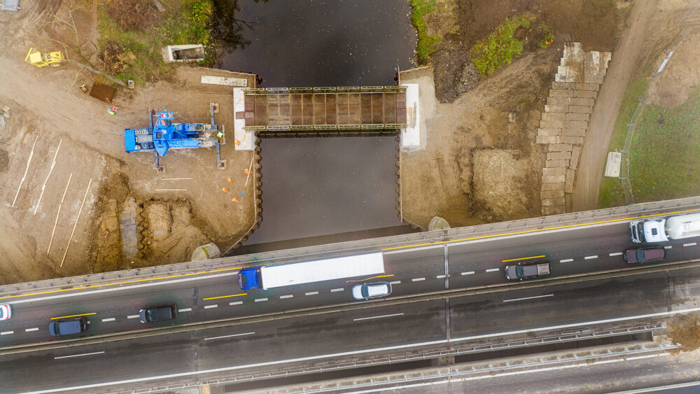 Na stavbě rozšiřovaného úseku D1 Brno–jih aktuálně pracujeme na přeložkách inženýrských sítí, skrývkách ornice a provádíme zemní práce pro vybudování provizorních ramp i montáž mostního provizoria.