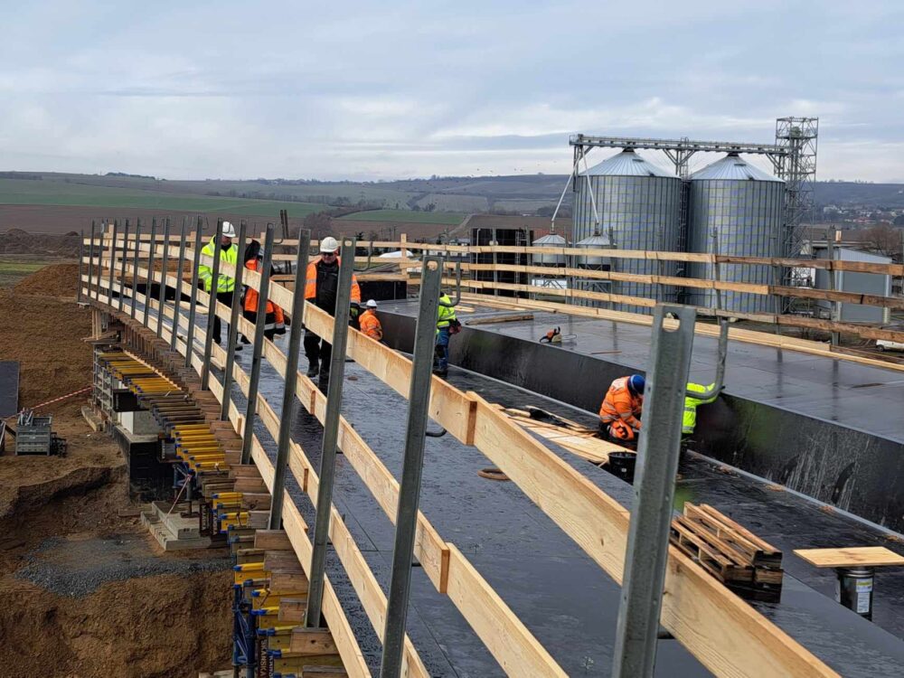 V zimních měsících na stavbě D55 Staré Město – Moravský Písek také pokračují práce na mostech, které jsou v různých fázích rozpracovanosti. „Celkově budujeme mezi Starým Městem a Moravským Pískem 9 mostů, z toho šest na dálnici a 3 nad dálnicí. Most u Moravského Písku máme již dokončený a řidiči už po něm jezdí v režimu předčasného užívání. Téměř hotový je také most u Kostelan, kde nám zbývá už jen dodělat dokončovací práce. Na mostu u Polešovic, který je založený právě na ražených prefabrikovaných pilotách, teď provádíme bednění nosné konstrukce a připravujeme se na její armování. Betonáž mostu plánujeme na konec února,“ popsal manažer oblasti Mosty Michal Hrutkai ze společnosti Skanska.