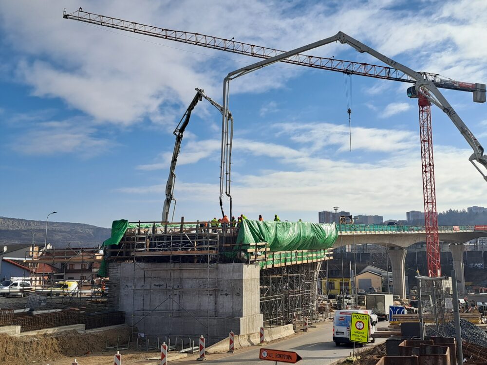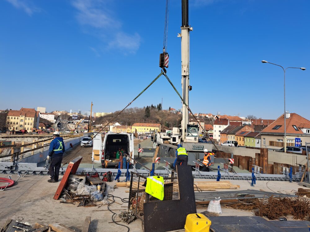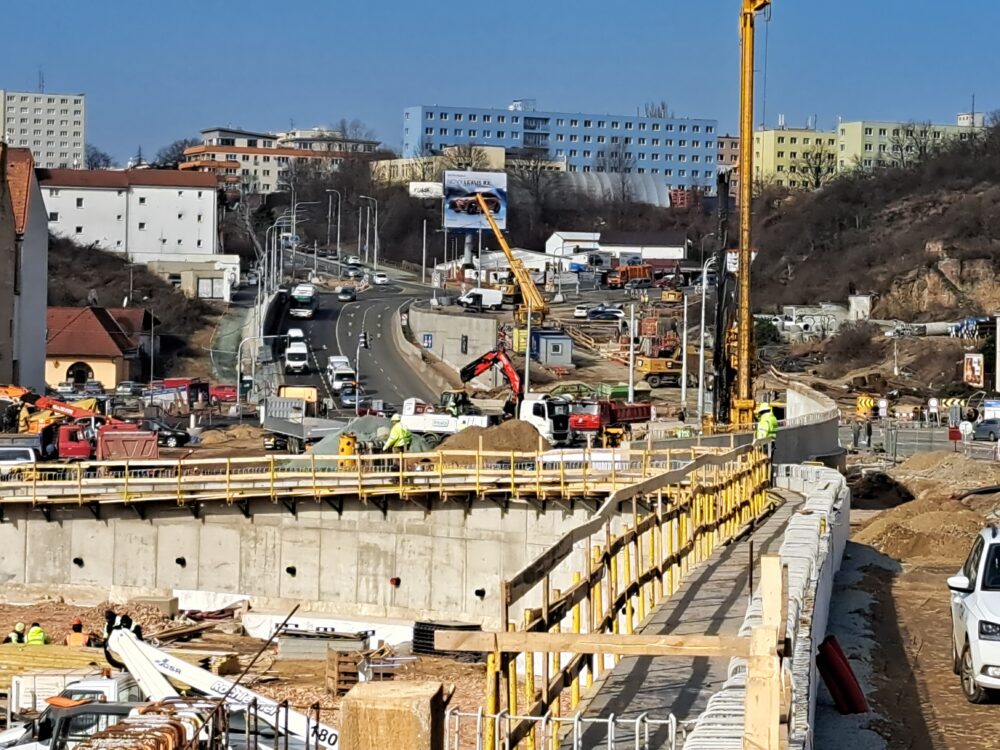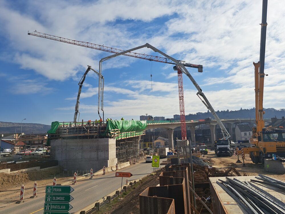 Betonáž pravého mostu estakády bude možné dokončit až po převedení dopravy na vybudovanou novou polovinu mostu přes řeku Svitavu. Převedení provozu z mostního provizoria předpokládáme v létě.