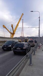Osazování nosníků mostu přes řeku Svitavu u Tomkova náměstí v Brně, které realizujeme od začátku týdne, postupuje dle harmonogramu a bez komplikací. Dnes jsme v závěrečné fázi. Pokud nenastanou nenadálé komplikace, předpokládáme, že ještě dnes práce dokončíme a vrátíme provoz zpět do režimu 2+2.