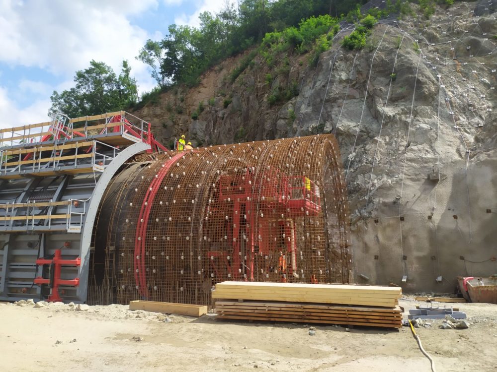 Začátkem týdne také proběhla betonáž prvního profilu přesypané části tramvajového tunelu na stavbě I/42 Brno, VMO Žabovřeská I, II., která se napojí na raženou 334 m dlouhou část.
