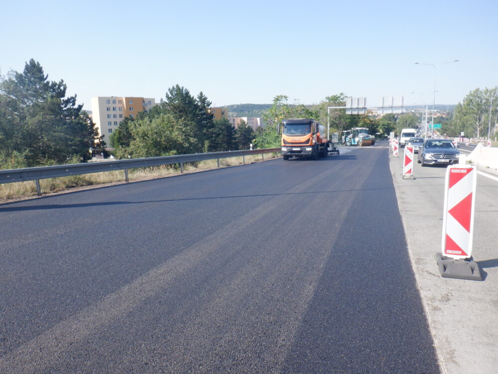Silnice I/23 v brněnské ulici Bítešská bude opět průjezdná bez dopravního omezení už v neděli 21. 8. Zatím je provoz stále veden v režimu 1+1.