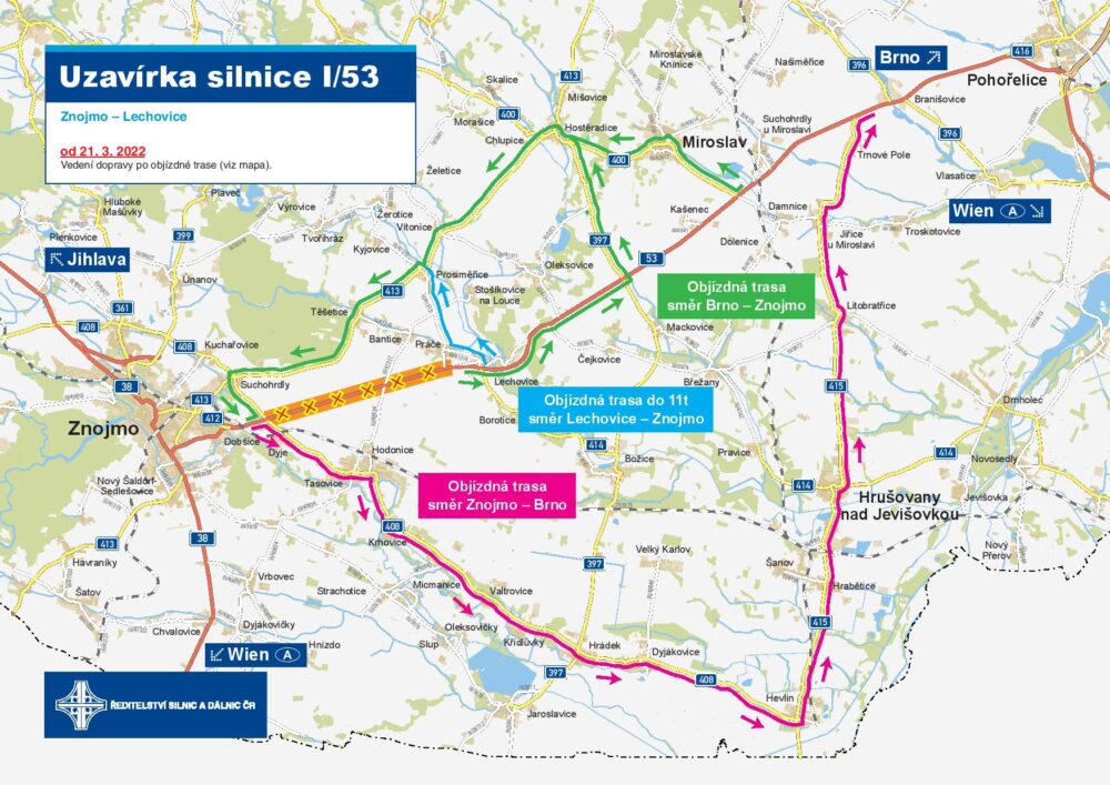 Frézováním vozovky a odstraňováním krajnic jsme v pondělí zahájili práce na silnici I/53 v úseku Znojmo – Lechovice. Od rána je tento úsek uzavřen a řidiči jezdí po objízdných trasách. Výrazné dopravní komplikace zatím naštěstí hlášeny nemáme.