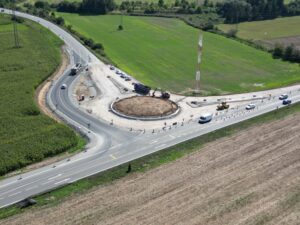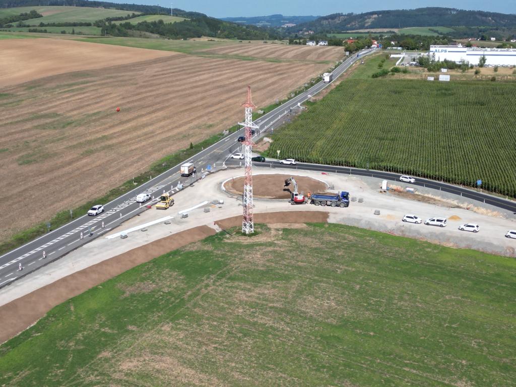 Stavba okružní křižovatky na silnici I/43 u Sebranic pokračuje bez komplikací. Do konce září chceme začít pokládat asfaltové vrstvy. Provoz je zatím stále veden po provizorní komunikaci. Po jeho převedení na novou křižovatku budeme pracovat a jejích připojovacích větvích. Cílem stavby je zvýšit bezpečnost řidičů v úseku častých nehod, kterým denně projede přes 15 tisíc vozidel. Dokončení plánujeme do konce roku 2023.