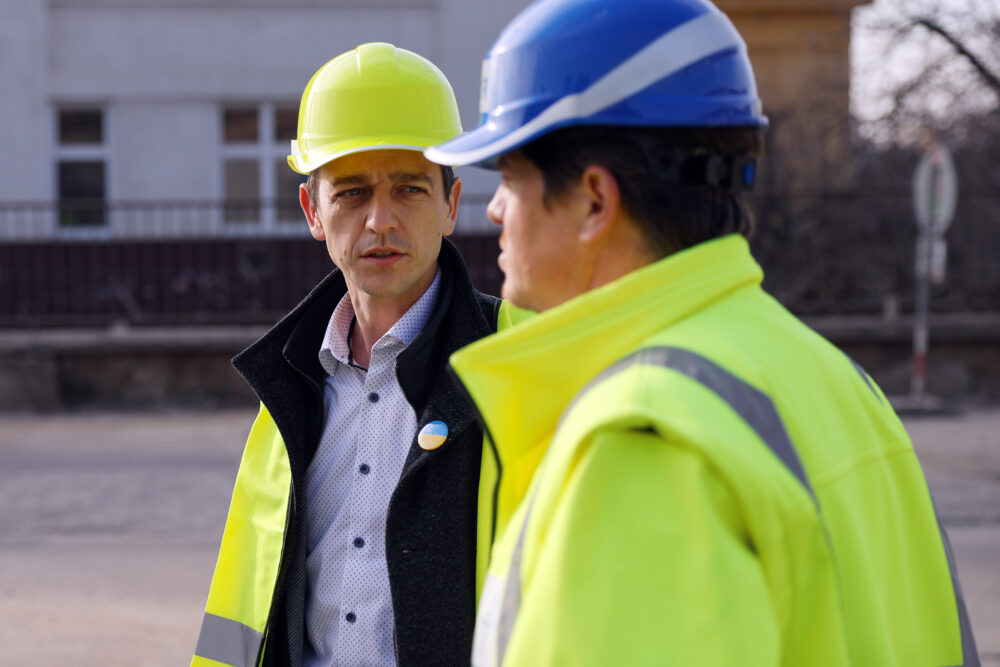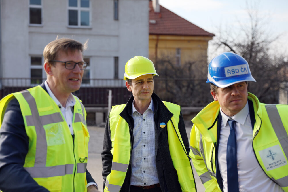 Ministr dopravy Martin Kupka, hejtman Jihomoravského kraje Jan Grolich a primátorka města Brna Markéta Vaňková dnes navštívili stavbu I/42 Brno, VMO Tomkovo náměstí a VMO Rokytova a prohlédli si shora budovanou mostní estakádu.