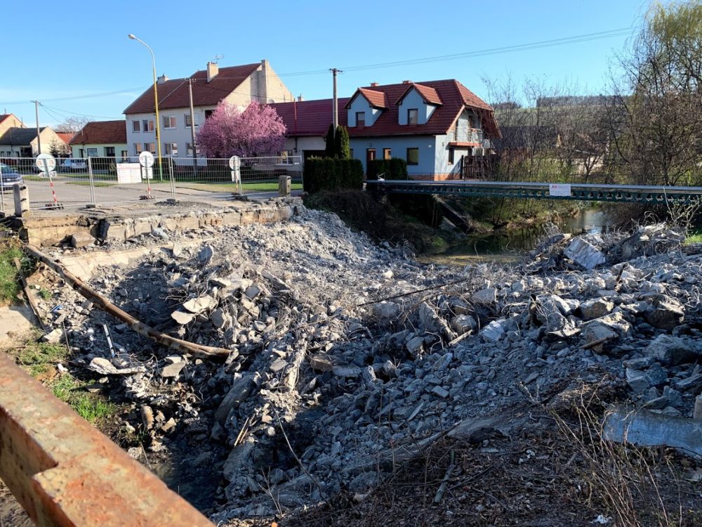 Původní most na silnici I/71 v Blatnici pod Sv. Antonínkem je již zdemolován. Nyní budujeme nový most, po kterém se řidiči poprvé projedou začátkem srpna. Oprava vyjde na 12,8 mil. bez DPH.