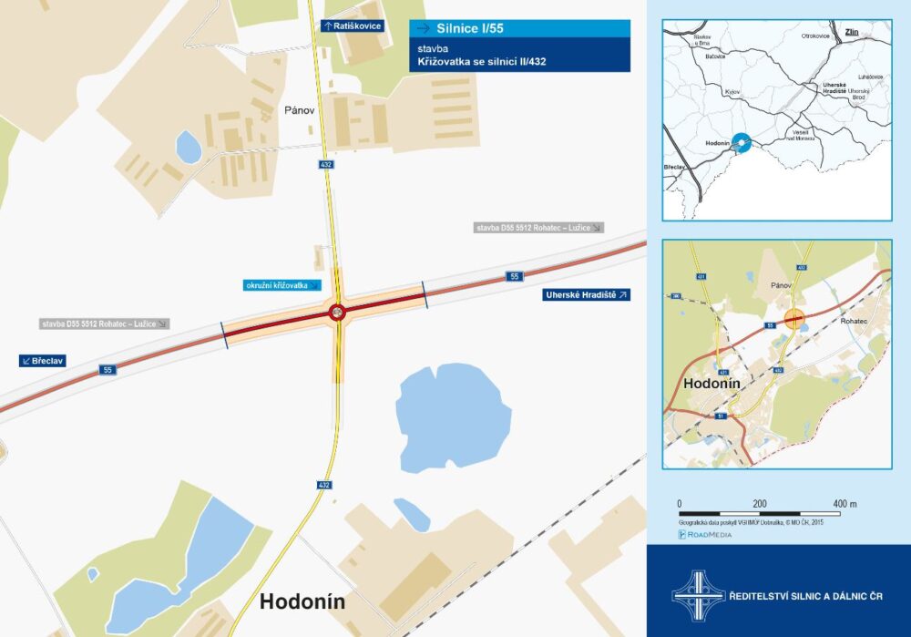 V letošní stavební sezóně zahájíme přestavbu křižovatky silnice I/55 a Měšťanské ulice, kde řidiči odbočují na hodonínský Pánov, na okružní. Cílem stavby je modernizace křižovatky silnic I/55 a II/432 a hlavně zvýšení bezpečnosti řidičů. Pánovská křižovatka patří k nejfrekventovanějším místům silnice I/55 v okolí Hodonína a bohužel bývá častým dějištěm dopravních nehod s tragickými následky. Stavba vyřeší přestavbu průsečné křižovatky na křižovatku okružní.