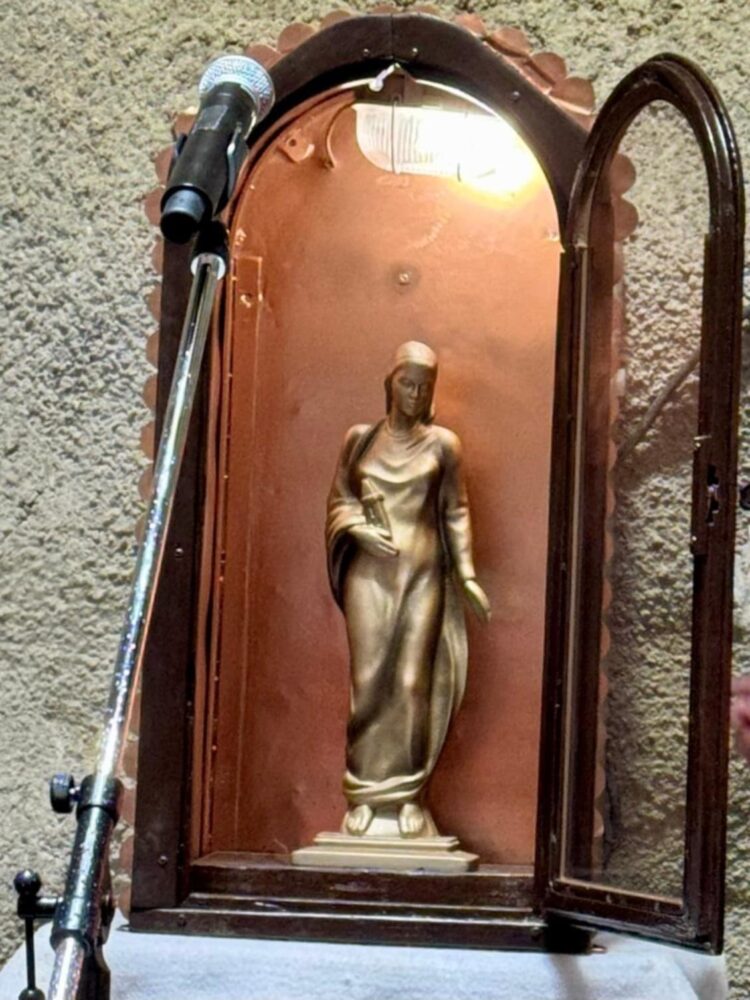 „Socha patronky váží asi 15 kilogramů a je vysoká 52 cm. Odlili ji z litiny ve Švýcarsku. Patronku havířů požehnal farář Petr Beneš“ uvedl ředitel ŘSD David Fiala.