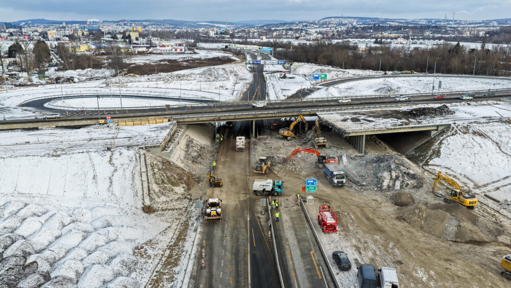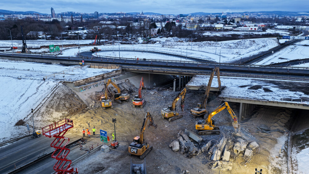Víkendová demolice mostu na D1 v Brně je hotová! Děkujeme řidičům za trpělivost během omezení a uzavírky D2. Silné mrazy práce komplikovaly – zamrzala hydraulika. Dálnice D1 i D2 jsou opět průjezdné ve zúžených jízdních pruzích v režimu 2+2.
