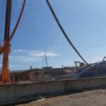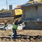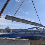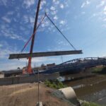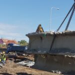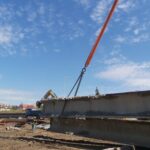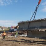 Největší automobilový jeřáb s teleskopickým ramenem, který je v ČR k dispozici, dnes snáší nosníky druhého pole pravé strany mostu nad řekou Svitavou u Tomkova náměstí v Brně. Nosníky na břehu rozebereme hydraulickými nůžkami. Betonový recyklát následně využijeme na stavbě.