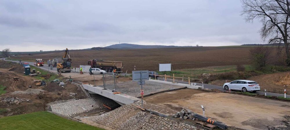 Aktuální pohled na opravovaný most přes Bukovanský potok u Kyjova na silnici I/54 zachycuje video níže. Původní most jsme zdemolovali a budujeme nový. Provoz je stále veden kyvadlově po mostním provizoriu. Práce dokončíme do konce roku. Oprava vyjde na 9,5 milionů Kč bez DPH. Děkujeme za trpělivost.