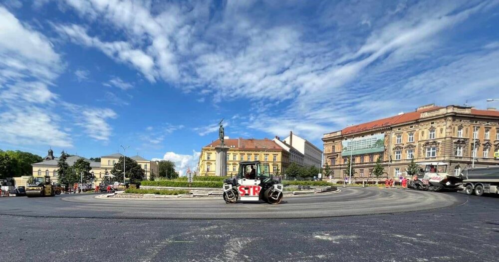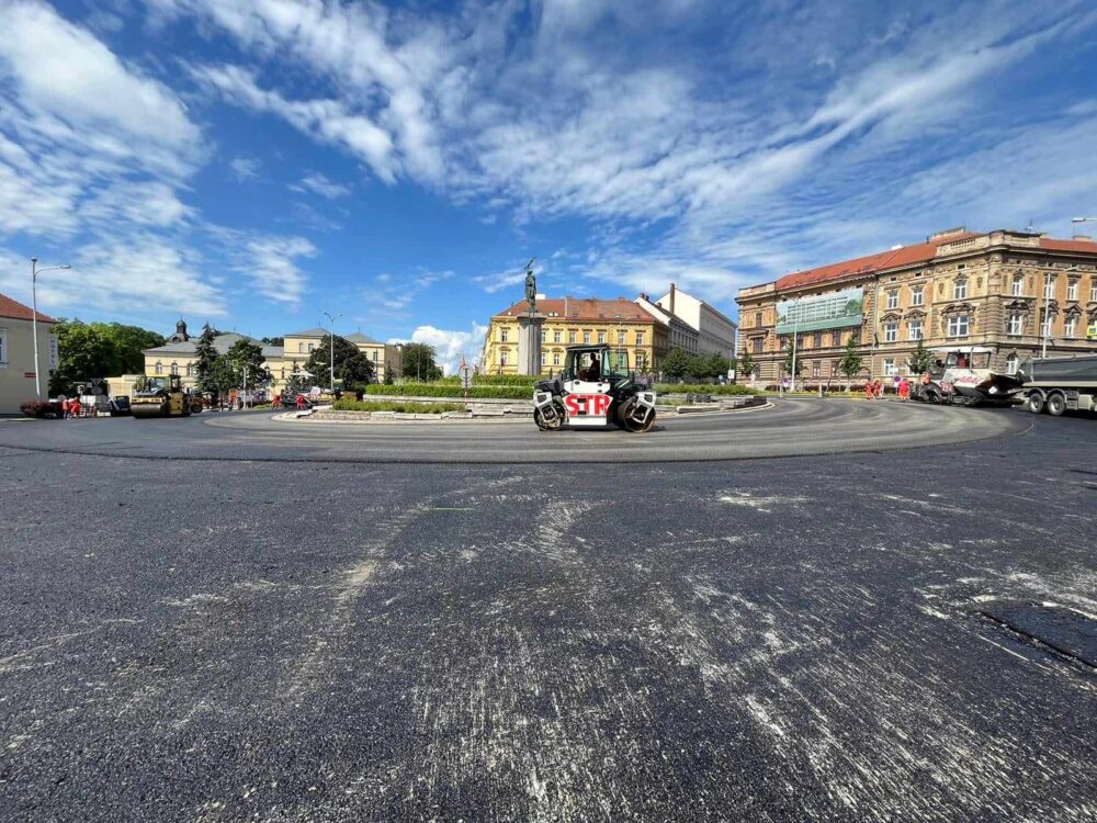 Ve Znojmě finišujeme opravu povrchu vozovky okružní křižovatky na Mariánském náměstí. Aktuálně probíhá pokládka obrusné vrstvy. Pokud nám bude počasí přát, křižovatka bude už ve čtvrtek 23. 5. průjezdná bez omezení.
