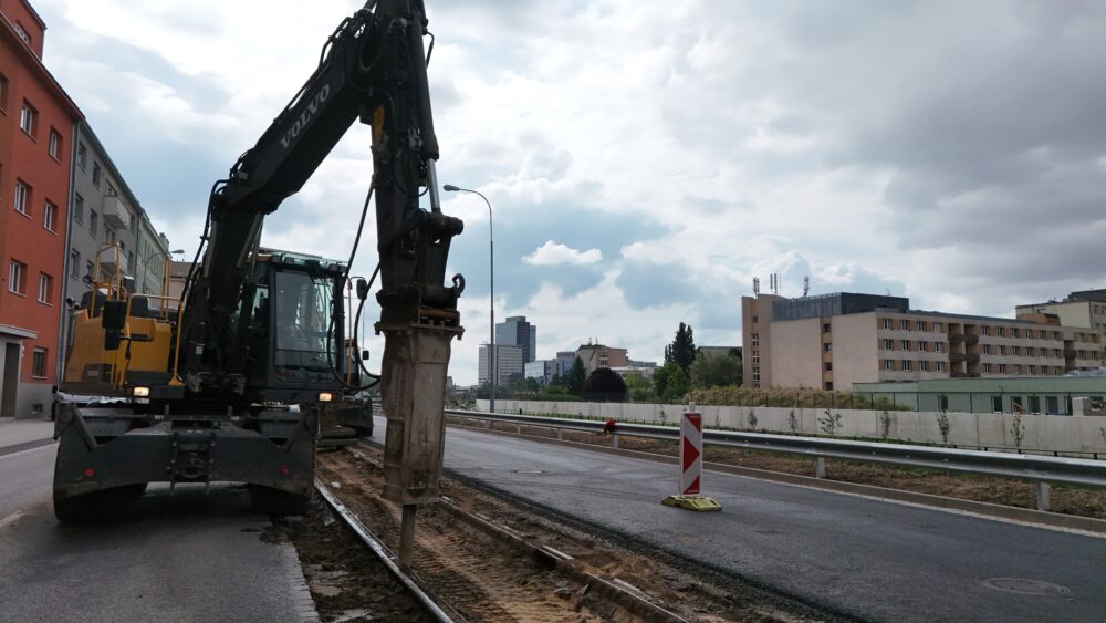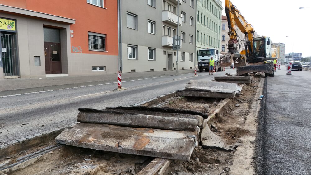 Na ulicích Poříčí a Bauerova od dnešního rána odstraňujeme starou kolejovou vlečku a pokračujeme v opravě povrchu silnice I/42. Dnes jsme postoupili do II. etapy, během které jsme částečně změnili organizaci dopravy. Celkově práce v ulicích Bauerova, Poříčí a Opuštěná dokončíme do 4. září.