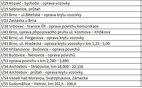 V uplynulém roce jsme v Jihomoravském kraji realizovali 21 akcí, opravili jsme povrch komunikací I. tříd v délce 39 km, 10 propustků a 17 km asfaltobetonového povrchu dálnice D52, kde jsme navíc instalovali 9 nových SOS hlásek. Z významných investičních akcí jsme letos dokončili stavbu mimoúrovňové křižovatky MÚK Drysice na dálnici D46, stavbu dvou okružních křižovatek ve Veselí nad Moravou a modernizaci silnice I/23 v obci Zastávka u Brna.