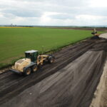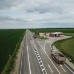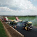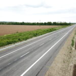 Pohled na stavbu I/53 Znojmo – Lechovice. Provedena byla kompletní přestavba v sedmikilometrovém úseku a rozšíření z 9,5 na 11,5 metru. V 1,5 km části byl ve směru na Znojmo přidán jeden jízdní pruh.