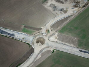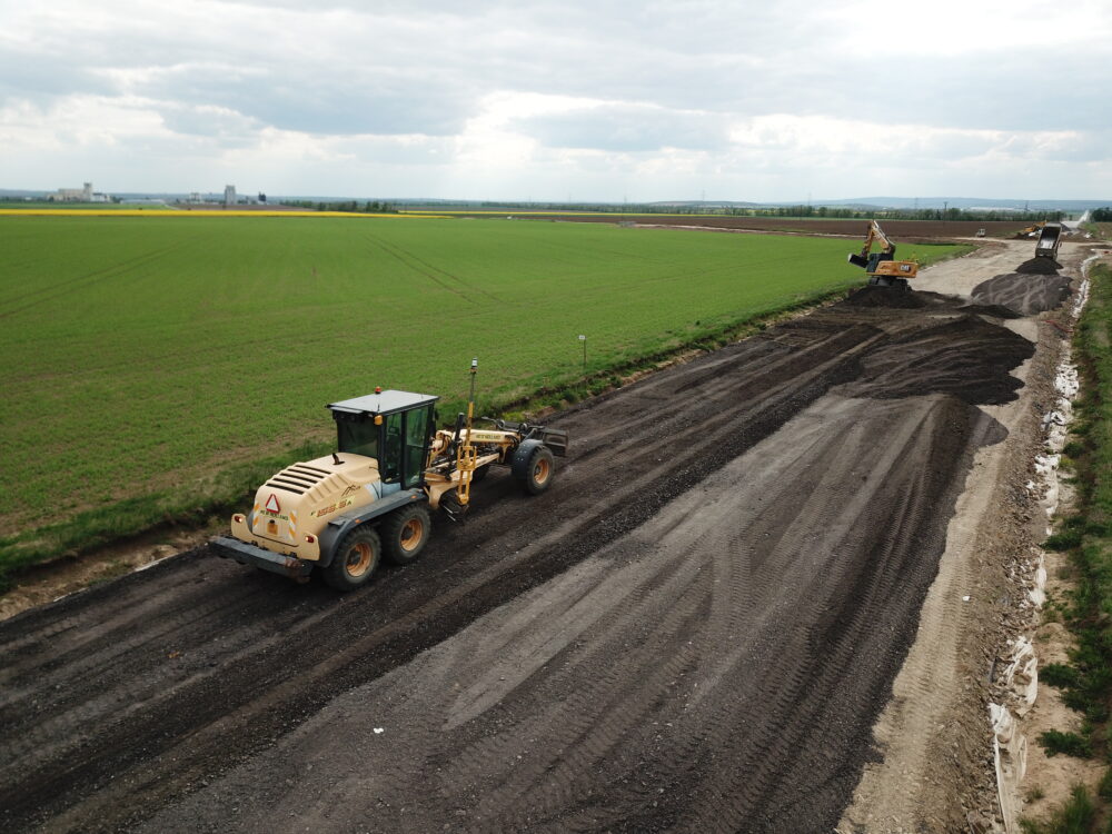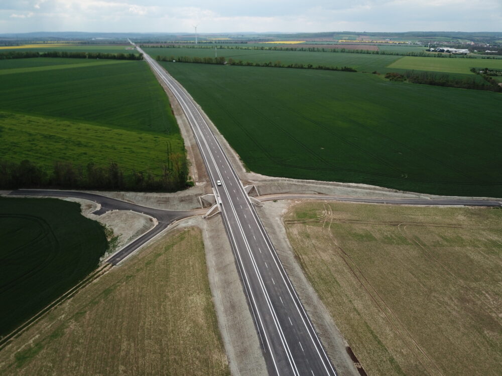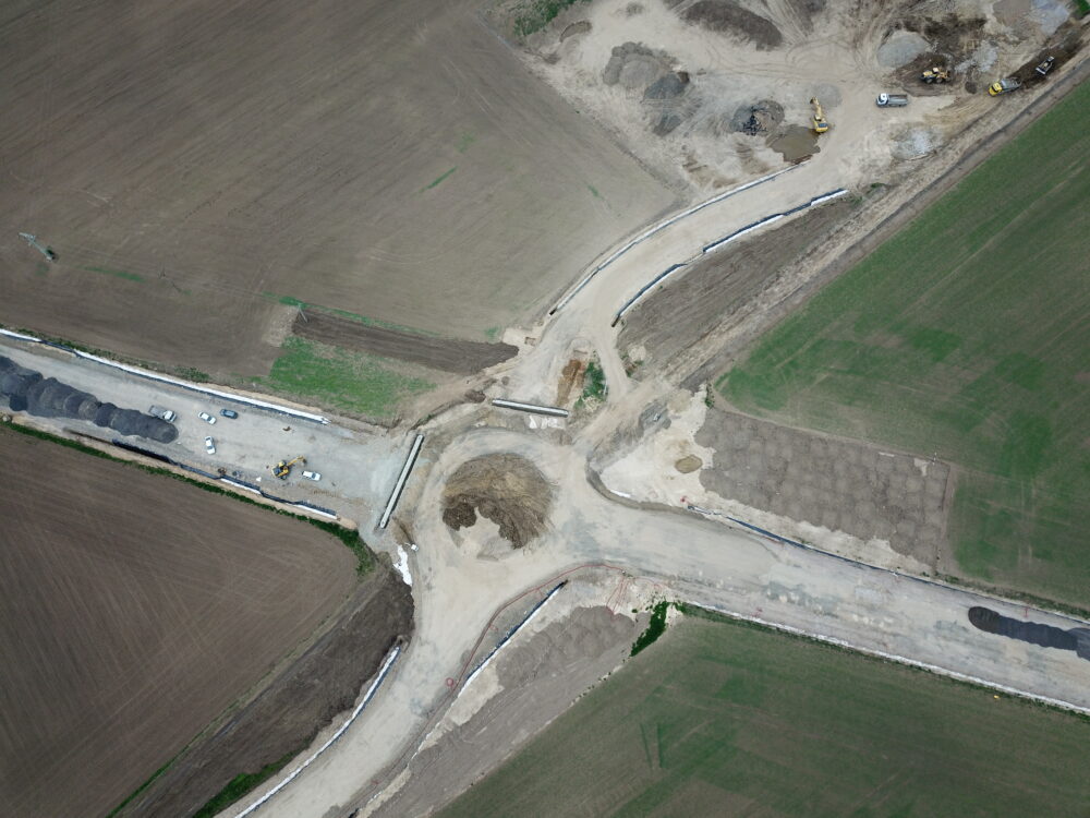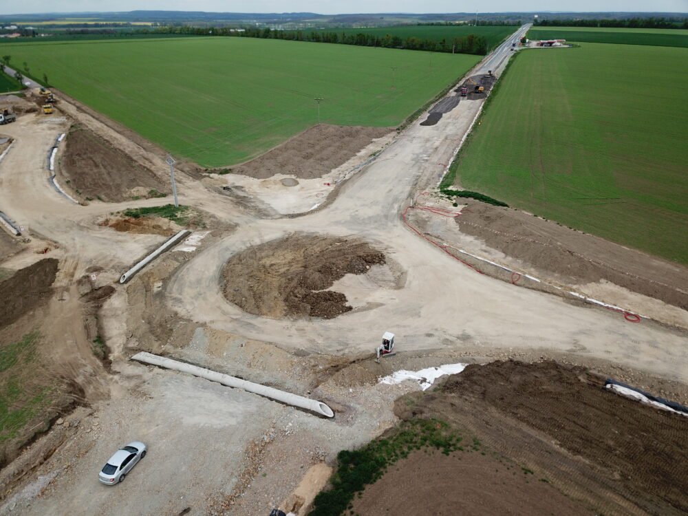 Aktuální pohled na budovanou okružní křižovatku na stavbě I/53 Znojmo – Lechovice, která spojuje silnici I/53 a komunikaci III. třídy mezi obcemi Bantice a Hodonice. Předpoklad dokončení prací je v červnu, kdy bude současně zprovozněna silnice I/53 v úseku Znojmo – Lechovice.