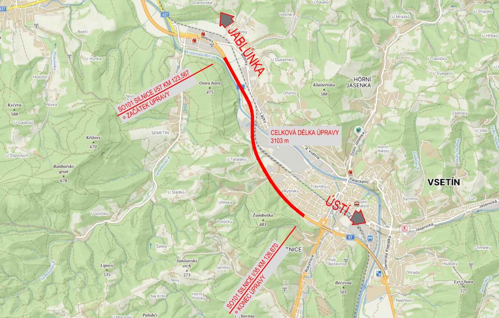 Začátkem dubna zahájíme opravu tříkilometrového úseku silnice I/57 mezi Vsetínem a Jablůnkou. Stavební práce odstartujeme 7. dubna a jejich dokončení plánujeme do 7. června.