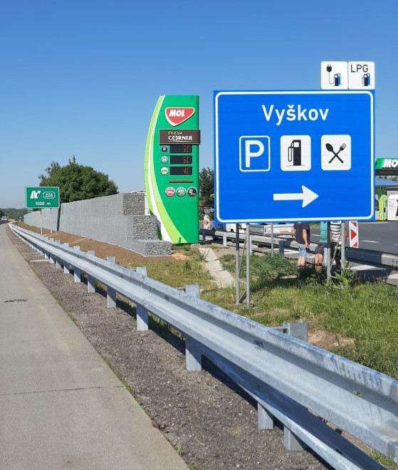 Na stávající levé odpočívce Vyškov na dálnici D1 (km 227) směrem na Brno jsme v loňském roce postavili gabionovou zeď. Nyní připravujeme její rozšíření. Dokončuje se zpracování DUSP a letos chceme zažádat o společné územní rozhodnutí a stavební povolení.