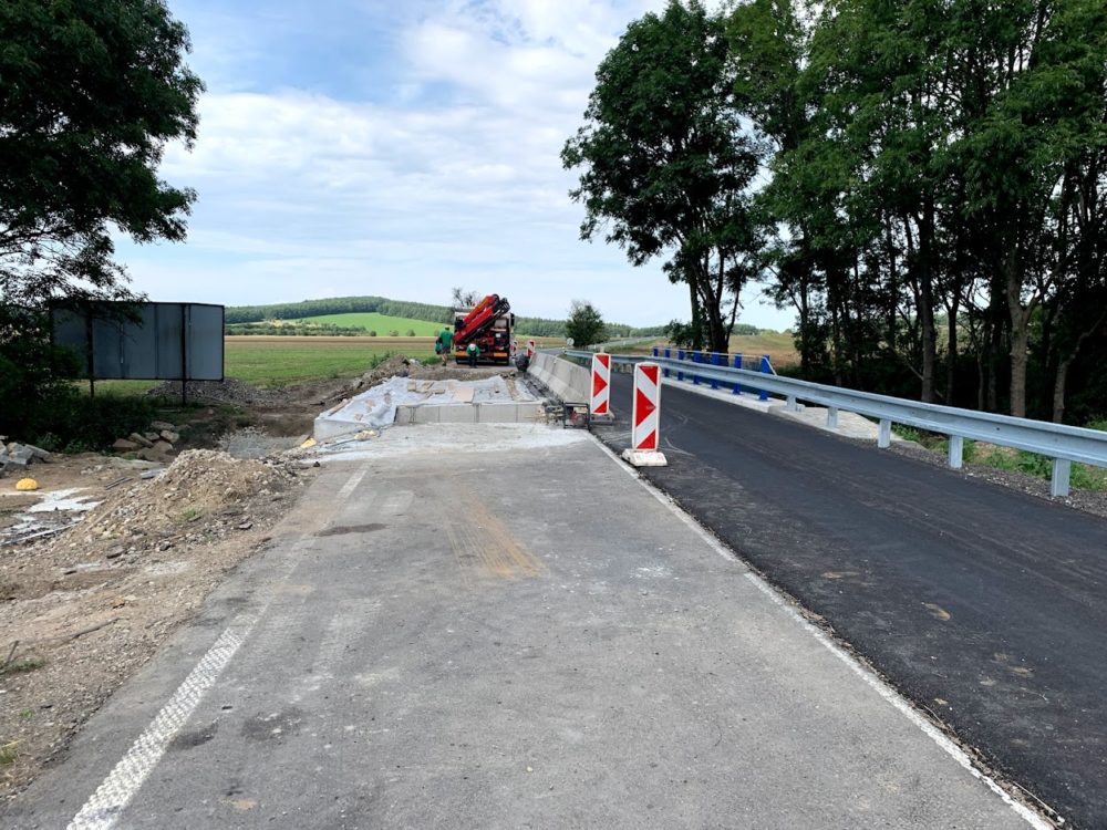 Budování 2. poloviny mostu přes Rybnický potok na silnici I/71 u obce Vrbovce zdárně pokračuje. Po novém mostu se poprvé projedete už v polovině října. Provoz je zatím veden kyvadlově po již opravené straně.