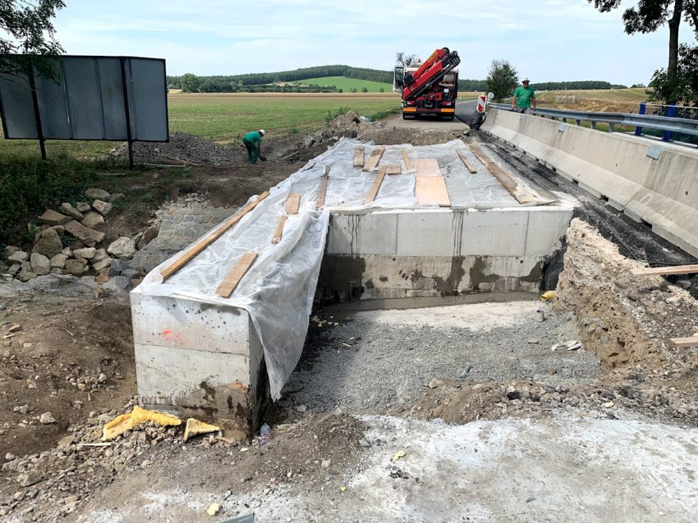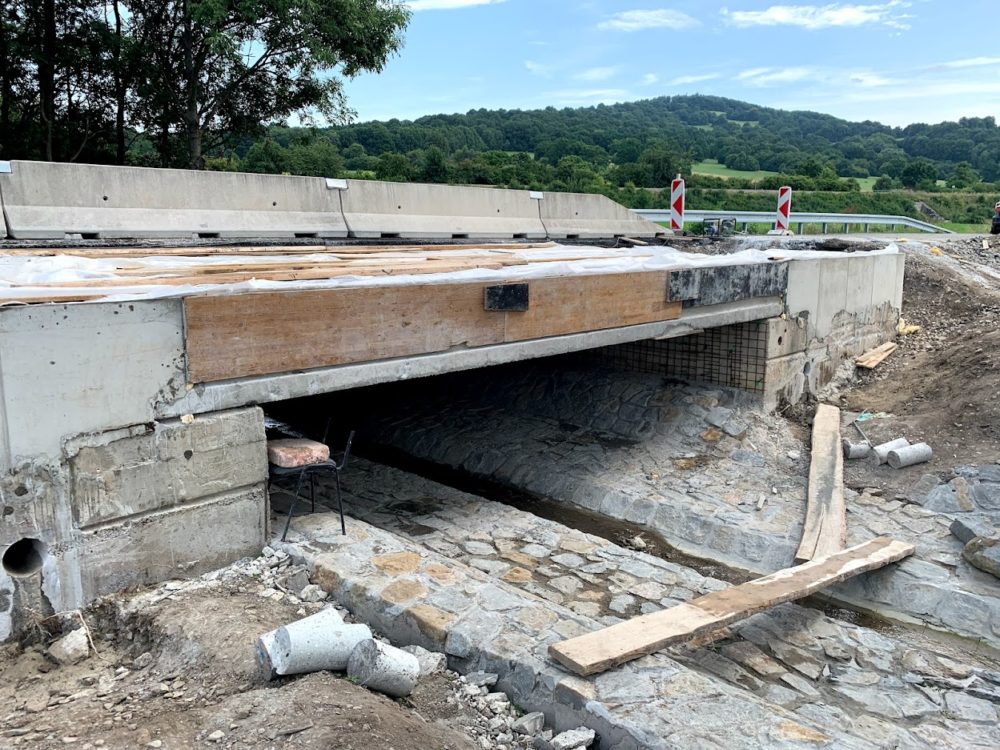 Budování 2. poloviny mostu přes Rybnický potok na silnici I/71 u obce Vrbovce zdárně pokračuje. Po novém mostu se poprvé projedete už v polovině října. Provoz je zatím veden kyvadlově po již opravené straně.