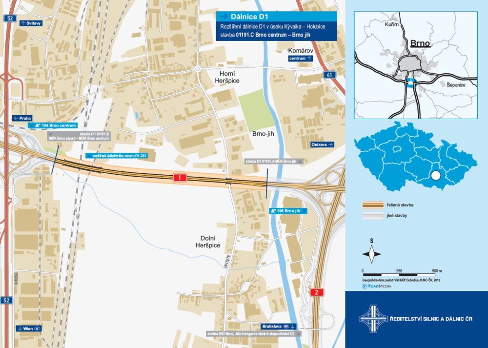 Kapacita dálnice D1 u Brna je vzhledem k vysokým intenzitám dopravy již nedostačující a její rozšíření je nezbytné. Celkově rozšíření D1 u Brna tvoří úsek dálnice od Kývalky po Holubice v délce 30 kilometrů, který je rozdělen do sedmi na sebe navazujících staveb. Stavba „D1 01191.C Brno centrum – Brno jih je 1. úsekem rozšíření, který po dokončení bude mít 3 pruhy v každém směru.