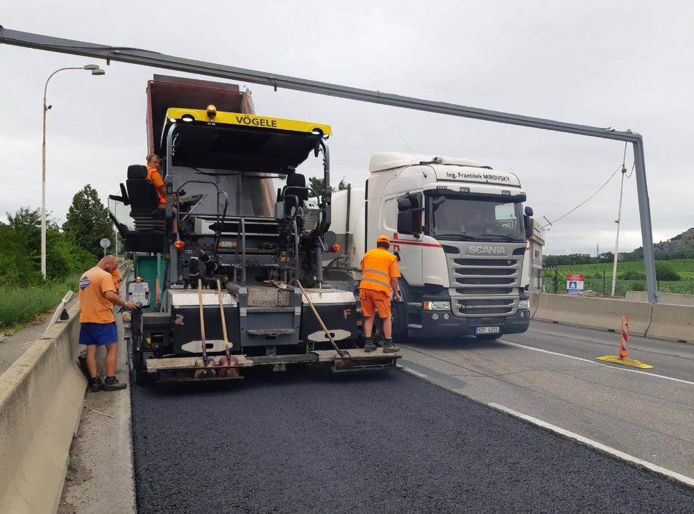 Oprava silnice I/52 v Mikulově v místě státní hranice pokračuje pokládkou nového povrchu vozovky. Práce ukončíme koncem příštího týdne. Stále projedete obousměrně 2 jízdními pruhy. Provoz není omezen, jen zpomalen.