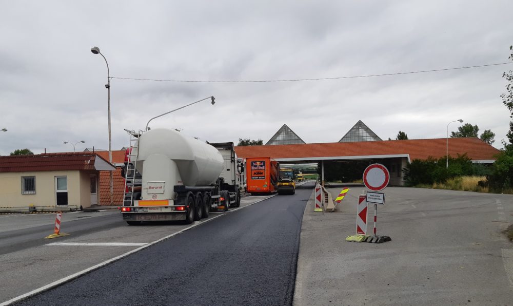 Oprava silnice I/52 v Mikulově v místě státní hranice pokračuje pokládkou nového povrchu vozovky. Práce ukončíme koncem příštího týdne. Stále projedete obousměrně 2 jízdními pruhy. Provoz není omezen, jen zpomalen.