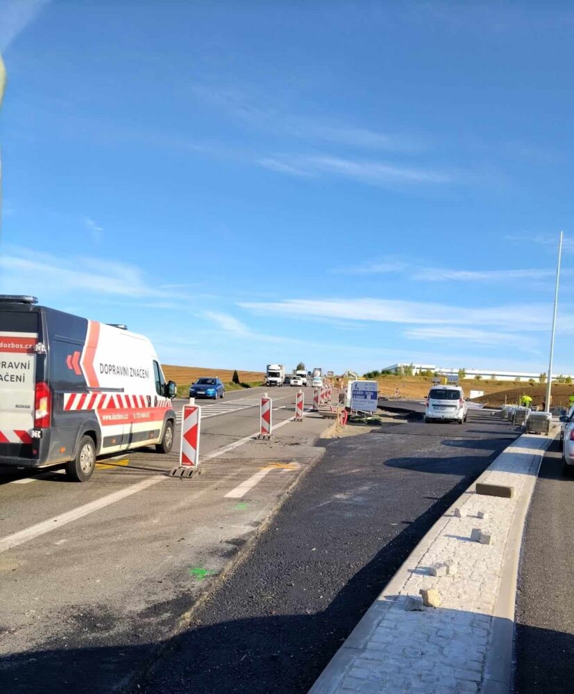 Pokládku asfaltových vrstev máme hotovou v části budované okružní křižovatky na silnici I/43 u Sebranic. Od pondělí 9. října na novou křižovatku převedeme provoz a budeme pracovat na připojovacích větvích a demontáži provizorní komunikace. Z důvodu těchto prací bude nutné zavést kyvadlový provoz, který budou řídit semafory. Kompletní dokončení prací plánujeme již začátkem listopadu.