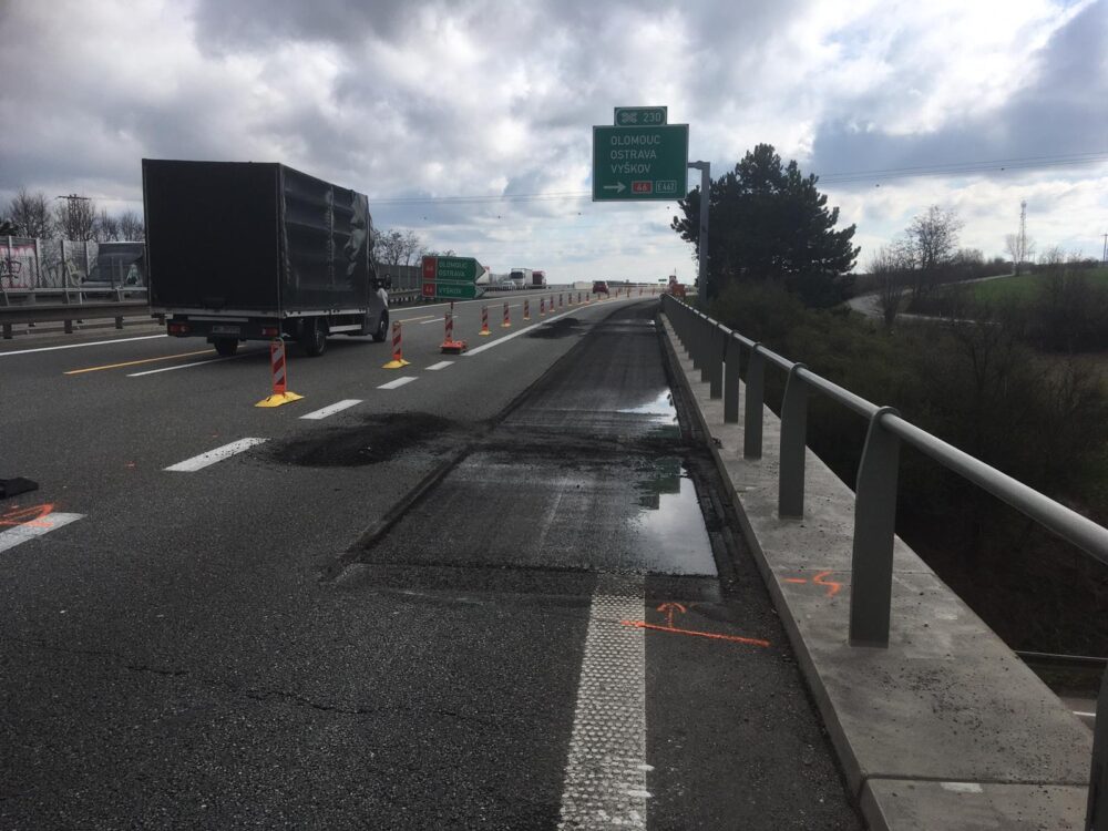 Frézováním vozovky jsme zahájili avizovanou rekonstrukci dálnice D1 v km 229 – 254 v prvním úseku v EXITu 230 Vyškov – východ. Pracujeme v pravém jízdním pásu ve směru na Kroměříž, včetně sjezdových ramp na Vyškov. V tomto úseku budou práce trvat 3 týdny do 21. 4.